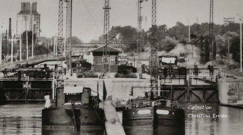 sur cette cpsm prise à Chauny dans les années 50 il me semble lire CUIR pour le bateau dans l'écluse de droite.