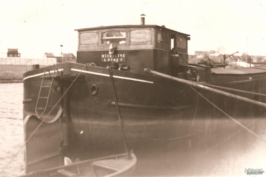 Mention du bateau de navigation intérieure de type péniche automotrice pontée en acier MICHELINE, construite en 1935, d’un tonnage à l’enfoncement maximum de 383 T 330, immatriculée à Lille le 21/11/1935 n°9142.