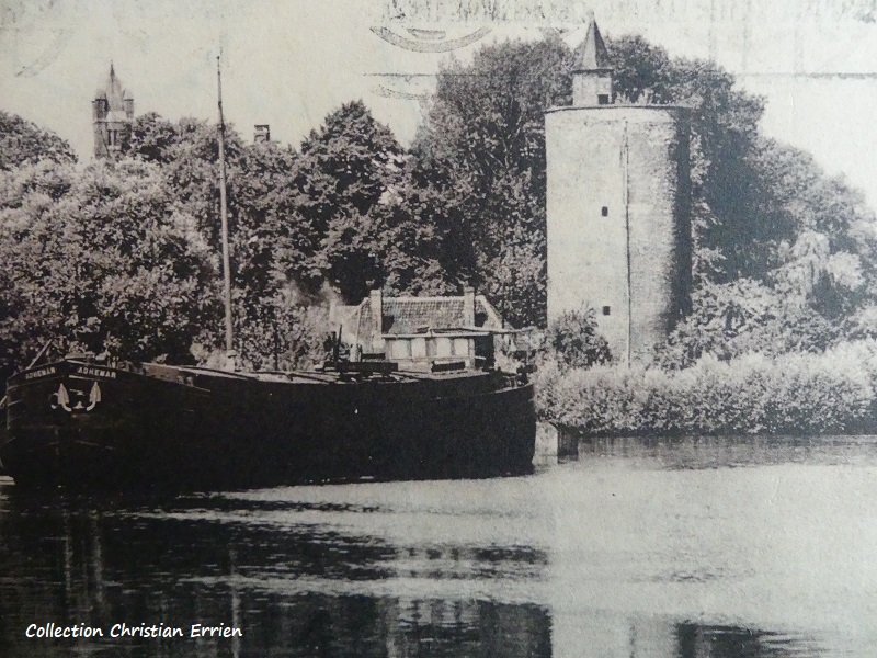 Voici un bateau pas trouvé sur le forum nommé ADHEMAR. C'est une cp des années 30 prise à Bruges