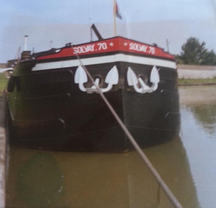 Alors oui, c'est vrai, on en avait déjà des photos aux couleurs Solvay, mais malheureusement, c'est en noir et blanc ou sépia ! Il nous fallait donc des photos en couleur pour compléter le sujet ! Et ENFIN Denis (le fameux dernier marinier du 70) a scanné ses photos ! Voici donc le SOLVAY 70 en rouge et gris :