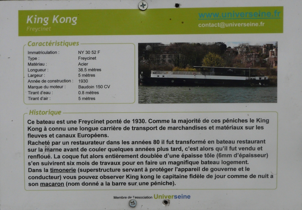 Un ancien marinier Solvay vient de me dire sur Facebook, après publication de la carte postale dessinée du restaurant LA PENICHE de Chelles, qu'il s'agissait du SOLVAY 70, devenu maintenant KING KONG !!! donc je fusionne !!!! Merci !!