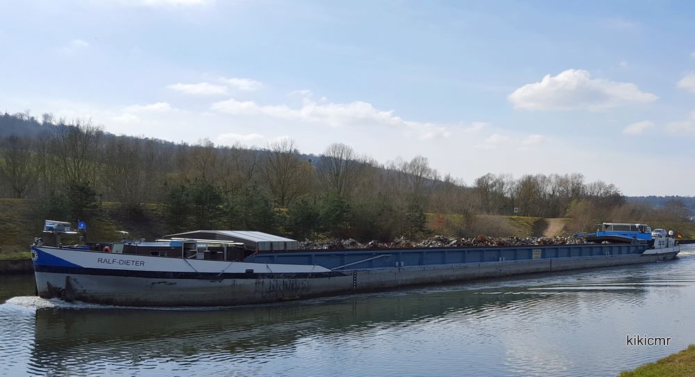 Montant à Neuves-Maisons (54), sur la Moselle canalisée, chargé de ferraille, le 26 mars 2016 :