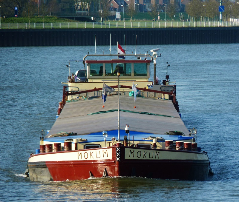 Mokum , 85,00 x 8,20 x 2,50 , 1300 ton , Bouwjaar 1957 , Werf Cassens in Emden ( Duitsland ) , 548 pk Caterpillar en 219 pk DAF boegschroef , ex WTAG 112 , ex WTAG 112 M , ex Lingen , ex Jacoba S , ex Narvik , ex Henja , ex Lean , ex Geronimo , eigenaar De Mokumer Vof in Westdorpe , ENI 02313959