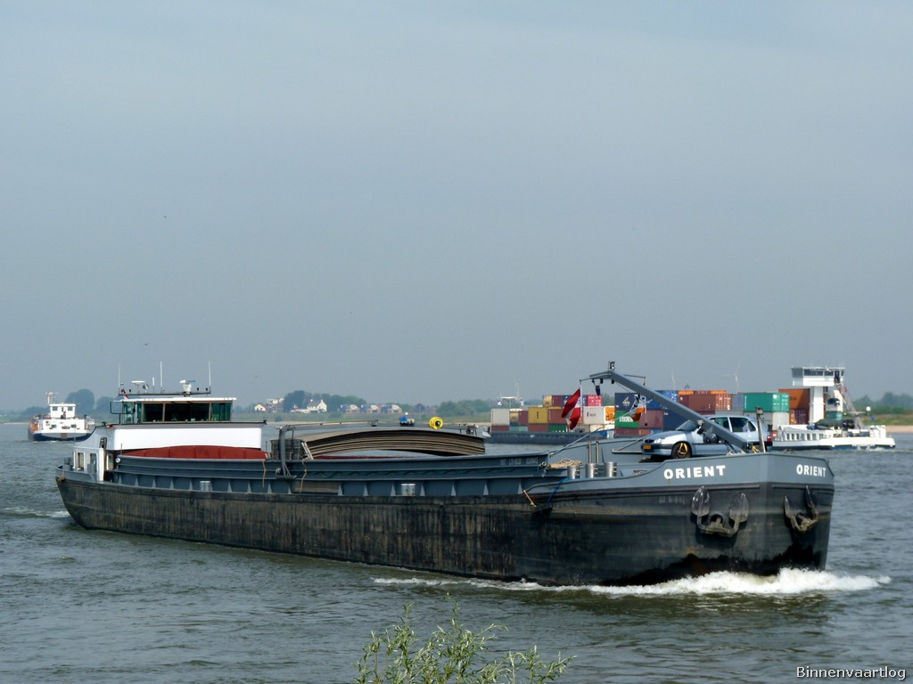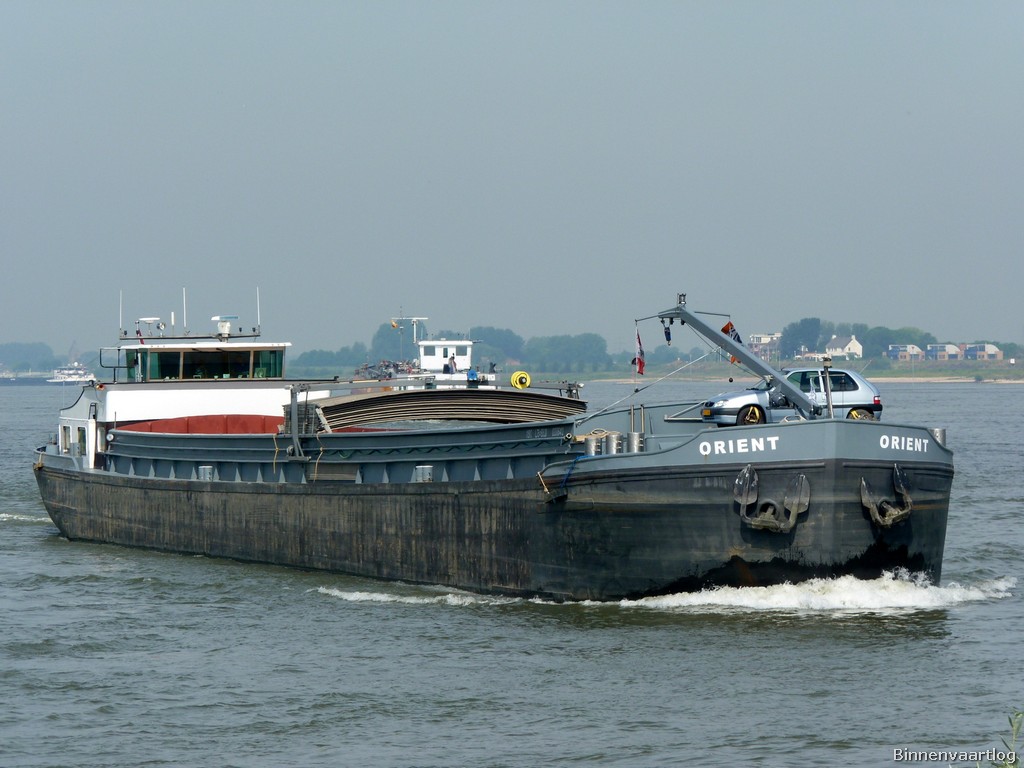Orient , 74,96 x 8,24 x 2,61 , 1150 ton , Bouwjaar 1961 , Werf Cassens in Emden ( Duitsland ) , 640 pk Caterpillar en 200 pk DAF boegschroef , ex Dattlen, ex Maasstroom II , ex Atlantis , ex Antartica , ex Ardito , eigenaar Vof Orient Scheepvaart in Werkendam , ENI 02006412