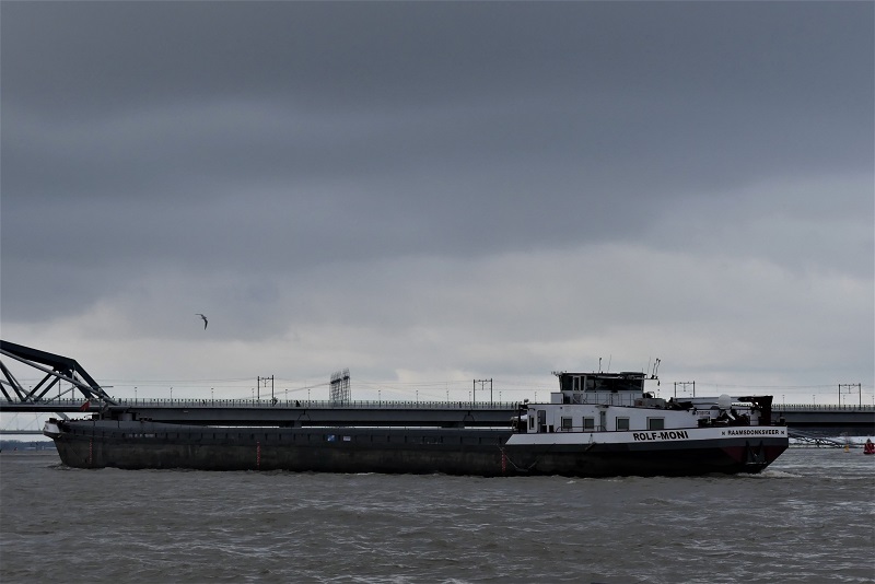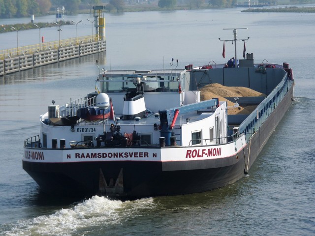 Rolf-Moni , 105,00 x 11,40 x 3,20 , 2636 ton , Bouwjaar 2001 , Werf Germersheimer Schiffswerft in Germersheim ( Duitsland ) , 1800 pk ABC en 2 x 440 pk Cummins van Tiem boegschroef , ex Neckarstein, ex Viento , eigenaar Kiepe in Raamsdonksveer , ENI 07001734