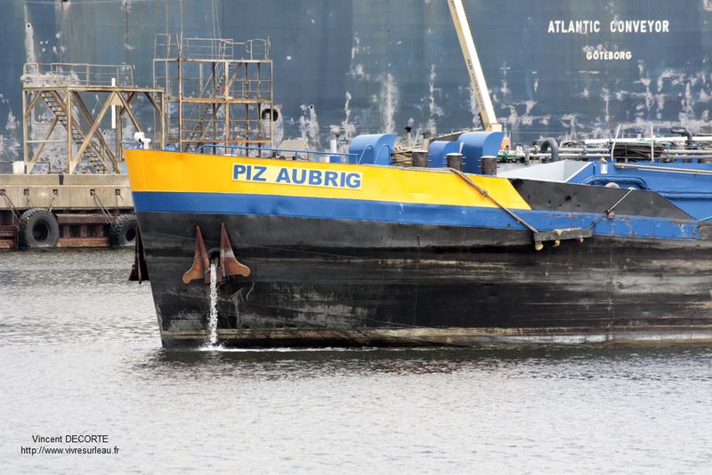 Aubrig , 79,90 x 9,54 x 2,80 , 1262 ton , Bouwjaar 1981 , Werf H. Grube in Hamburg ( Duitsland ) , 860 pk Mitsubishi , ex Elbe VIII , ex Oste , ex Piz Orizaba , ex Fluvia , ex Piz Aubrig , eigenaar Batowa GmbH in Basel , ENI 05107550