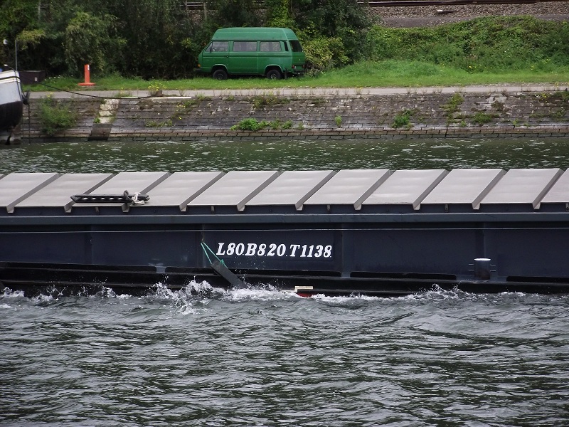 A la même écluse de Floriffoux sur la Sambre, le Pareatis croise le SAN REMO ex Conspiro, ex Conolia, ex Candia, ex Donau Maru; construit en 1954 au chantier J.G. Hitzler à Lauenburg en Allemagne; 80 x 8,25 m. et 1146 T.