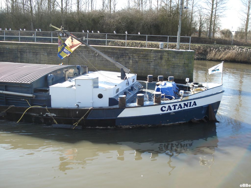 Catania , 66,90 x 8,18 x 2,52 , 890 ton , Bouwjaar 1957 , Werf J.G. Hitzler in Lauenburg ( Duitsland ) , 730 pk Caterpillar en 320 pk DAF boegschroef , ex Neska 92 , ex Henri M , ex Denzo , ex Inge , eigenaar M. Borgo in Gent , ENI 06004254