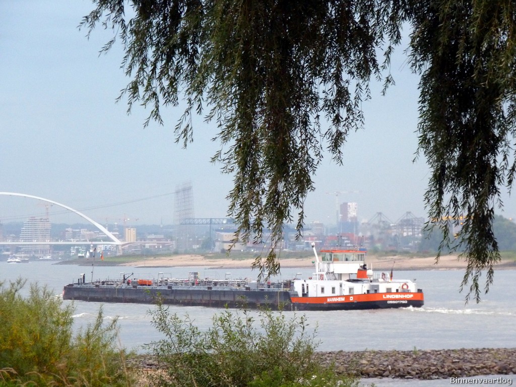 Lindenhof , 84,98 x 9,50 x 3,15 , 20151 ton , Bouwjaar 1986 , Werf Weserwerft in Minden ( Duitsland ) , 1200 pk Deutz , eigenaar Rheinfracht GmbH & Co KG in Mannheim , ENI 05501750