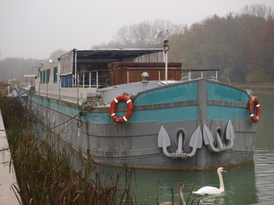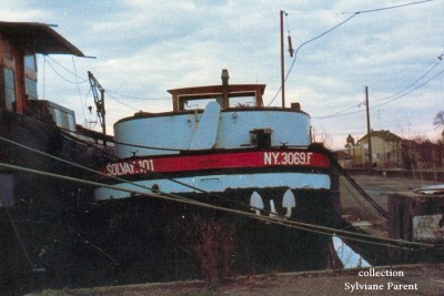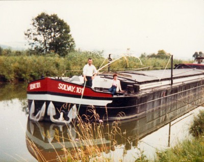 Photo prise à Dombasle, en septembre 1983, tirée d'une brochure publiée par l'Office National de la Navigation - Direction Régionale de la Navigation de Nancy : "Industriels de l'Est : le transport fluvial, y avez-vous pensé ?".