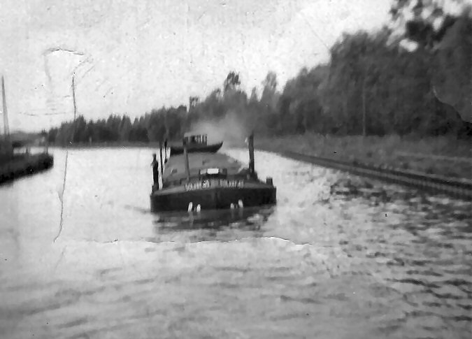 La photo est un peu floue, mais c'est bien le SOLVAY 45 chargé, en navigation :