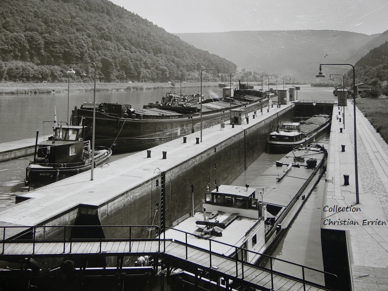 une nouvelle cpsm de Rockenau et dans le sas de droite le KARL TIEDTKE 4. D'après Binnenvaart ce bateau a été construit en 1955 au chantier Busching & Rosemeyer (57mx7m25/668t)