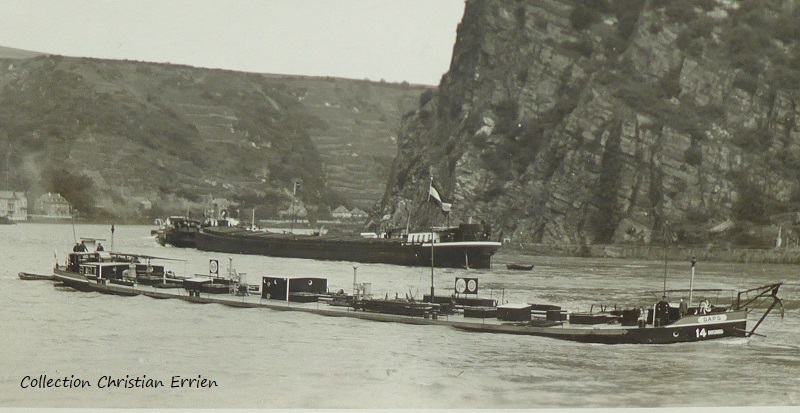 Voici une cpsm prise sur le Rhin et datée de 1947. On voit un pétrolier Esso nommé DAPG 14.