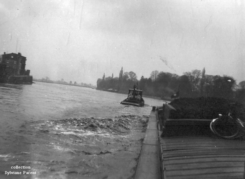 ● sur une rivière, peut-être en Belgique, en remorque :