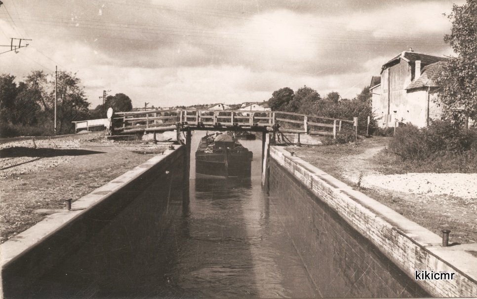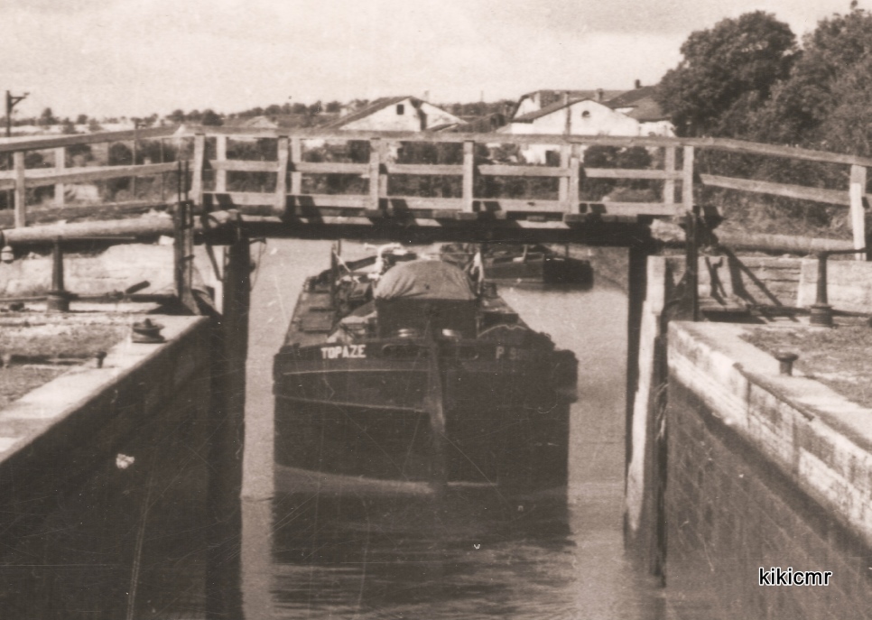 Vous reconnaissez le montant chargé amarré à l'aval de l'écluse, rive droite ? C'est le N15 ! On a donc à faire à deux photos prises à peu de temps d'intervalle, sauf que celle du N15 a été éditée en carte postale, tandis que celle du TOPAZE, du moins l'exemplaire que j'ai, est seulement une épreuve, peut-être qu'elle n'a jamais été tirée en carte postale.