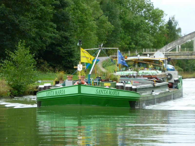 Alors pour répondre à ta question Andy, ce bateau n'était pas venu à Nogent depuis 1995. Il a fait les sables sur l'Aisne durant 12ans, et le moteur de 230Cv souffrait pas mal, les propriétaires n'osaient pas s'aventurer. Maintenant que le moteur a été changé l'an dernier, ou début de l'année, ils repartent à l'aventure !