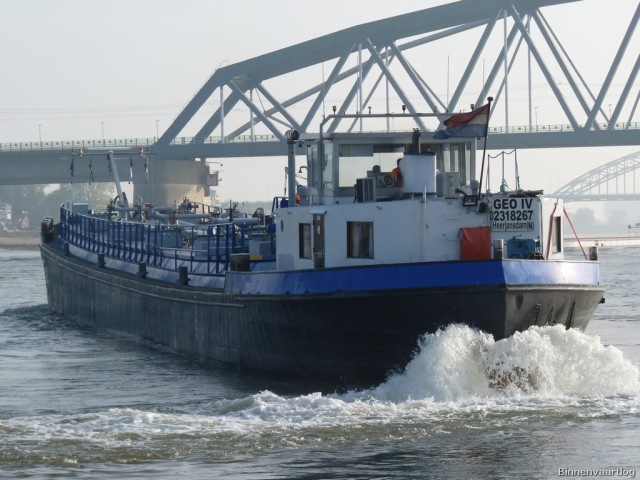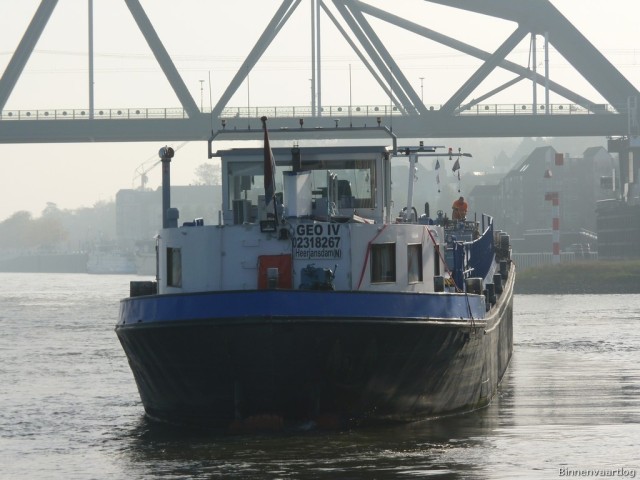 Geo IV , 67,00 x 7,29 x 2,72 , 853 ton , Bouwjaar 1960 , Werf Lambrechts in Boom ( Belgie ) , 420 pk Deutz , ex Brugge , ex Hortensia , eigenaar Geo BV in Stellendam , ENI 02318267