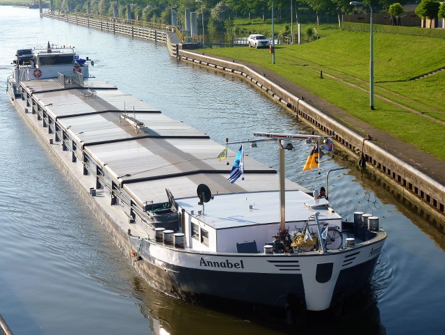 Annabel , 80,00 x 8,20 x 2,81 , 1303 ton, Bouwjaar 1964 , Werf Lambrechts in Boon ( Belgie ) , 816 pk MTU en 220 pk DAF boegschroef , ex Adry , ex Banzai , ex Progres , ex Kairos , ex Contra , ex Nautic 4 , eigenaar J.Siersack & A.de.Kruijk in Maasbracht , ENI 02326613
