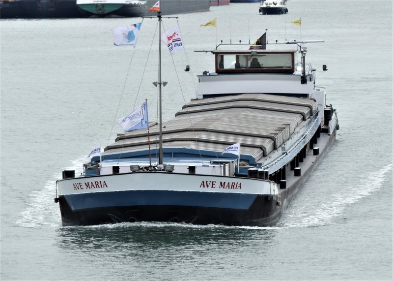 Ave Maria , 79.60 x 8,20 x 2,80 , 1274 ton , Bouwjaar 1963 , Werf Lambrechts in Boom ( Belgie ) , 2 x 398 pk GM , ex Adrianus , ex Rofra , ex Pecunia , eigenaar Marcel Fasquelle in Gent , ENI 06002458