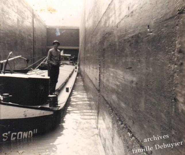 Mon père, René Debuyser, à bord du bateau de ses parents, Julien Debuyser et Paulette Brulin, le