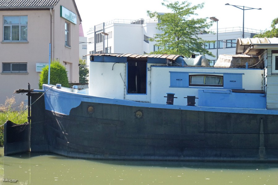 On ne savait pas ce qu'il était devenu, ce grand numéro, alors que je l'avais en photo depuis septembre 2012 ! Il est amarré à Schiltigheim (67), sur le canal de la Marne au Rhin, à l'époque sans devise et sans matricule :