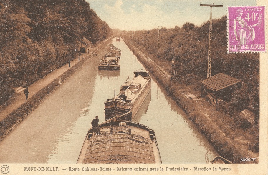 Mont-de-Billy - Route Châlons-Reims - Bateaux entrant sous le funiculaire - Direction la Marne