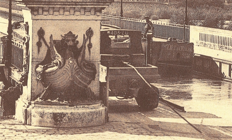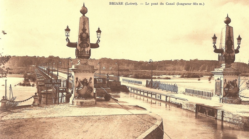 Une belle scène de traction sur le pont-canal de Briare, sur laquelle on peut voir l'arrière du COQUELICOT, sur lequel on peut lire "POLIET ET CHAUSSON" ainsi que son matricule P9846F :