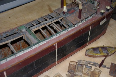 Pour revenir à la maquette, voici une photo en cours de remontage, tout y est dans le moindre détail, on peut voir les..??..que je sais plus le nom mais qui sont en profil U pour étancher les écoutilles.