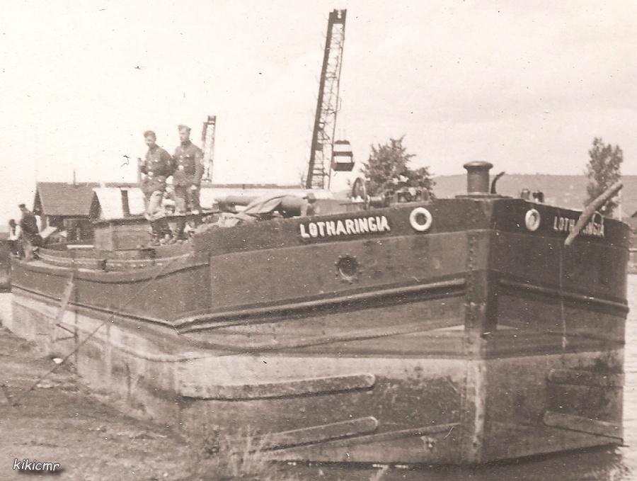 LOTHARINGIA presque dans son état initial ! Cette photo a été probablement prise par un soldat allemand ; elle n'est pas datée ni localisée, mais j'ai retrouvé l'endroit : c'est sur le canal de la Marne au Rhin, à Nancy (54), dans le large de Bonsecours.