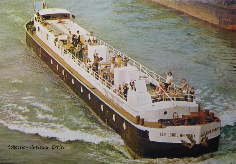 je reviens sur LES JOURS HEUREUX le gos numero c'est bien ce bateau qui aprés avoir transporté des marchandises diverses appartenant à monsieur DELLOFFRE devait partir au dechirage.Vers les année 1980. Il a été racheter par l'association les compagnons des jours heureux