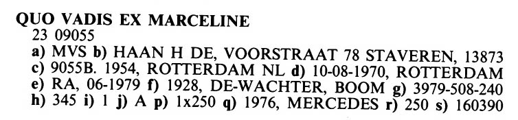 - Quo Vadis à Lammert Venema ex Quo Vadis à Henk de Haan ex Marceline