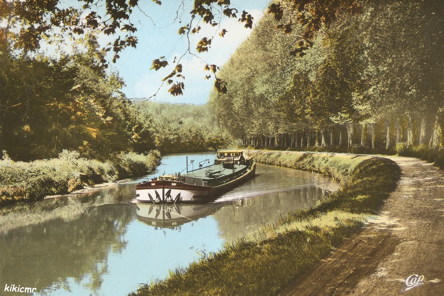 Le canal du Loing à Nemours, sur une carte postale écrite en 1965 :