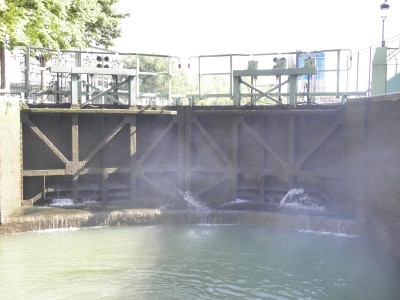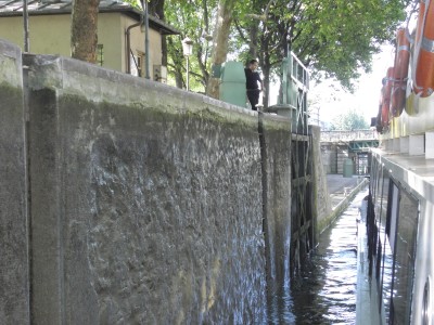 Bref, nous voila dans l'ecluse de mon copain.... euh, comment s'appelait-il deja celui qui etait en haut la ??