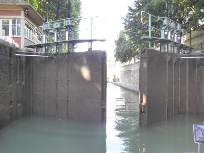 Bref, voila que l'ecluse est vide, et nous devons donc passer le deuxieme sas de cette ecluse de Jaures, euh non.. de la Villette !