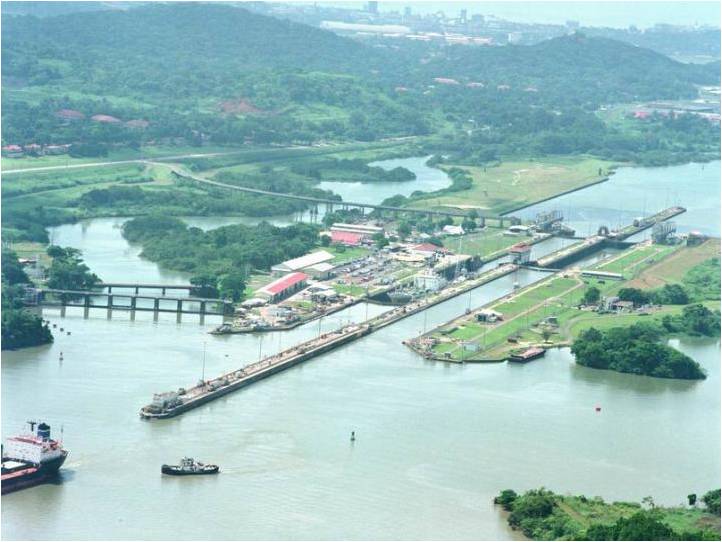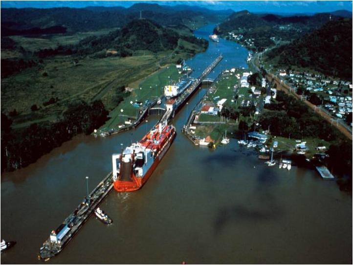 Juste pour la petite histoire, ce canal fût commencé par des français, sous la direction de Ferdinand de Lesseps (constructeur du canal de Suez) en 1882. Il devait au départ être, comme Suez, un canal à niveau, sans écluse. Des problèmes d'ordre technique (tremblement de terre, éboulements consécutifs aux fortes précipitations de la saison des pluies, décès en grand nombre des ouvriers touchés par la fièvre jaune et la malaria...) et économiques (scandale financière et faillite de la compagnie du canal) aboutissent à l'abandon des travaux en 1889. Une nouvelle compagnie est créée en 1894 mais cesse à son tour ses activités 10 ans plus tard. En 1903, un traité accorde aux Etats-Unis les droits de construction et d'exploitation du canal. Cette fois, il est décider, de manière à réduire les volumes de terre et de roche à extraire, de réaliser le canal avec des écluses. Ce canal est enfin achevé en 1914. L'ouvrage a été rétrocédé au Panama le 31 décembre 1999.