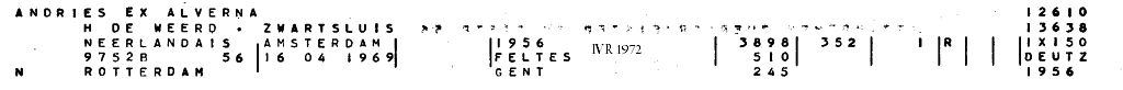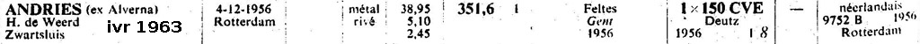 Johanna F , 38,95 x 5,10 x 2,47 , 353 ton , Bouwjaar 1956 , Werf G. Feltes, Evergem ( België ) , 200 pk Volvo , ex Alverna , ex Andries , ex Amor Vincit , ex Sri Lanka , ex Bornrif , ex Marina 2 , ex Johanna F , eigenaar Vof. Zeilvracht Nijverheid in Wormerveer , ENI 02309752