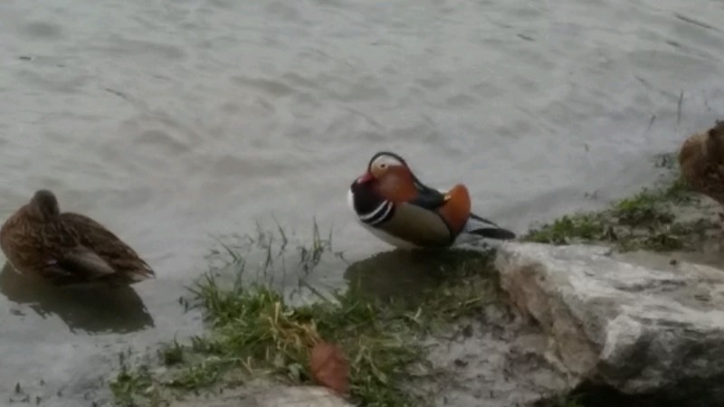 Depuis une semaine environ, nous avons sur le plan d'eau de Sablons ce canard Mandarin.