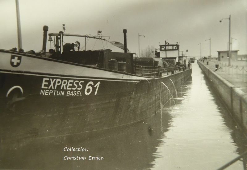 Sur cette photo originale prise certainement en Alsace le bateau EXPRESS 61.