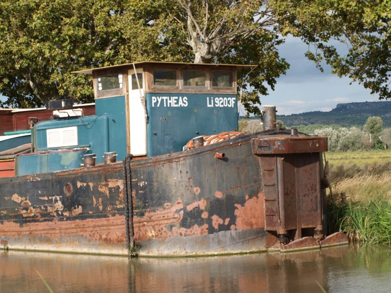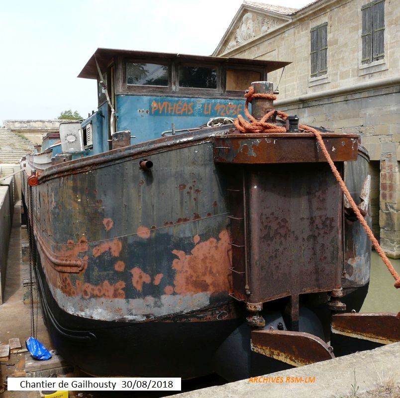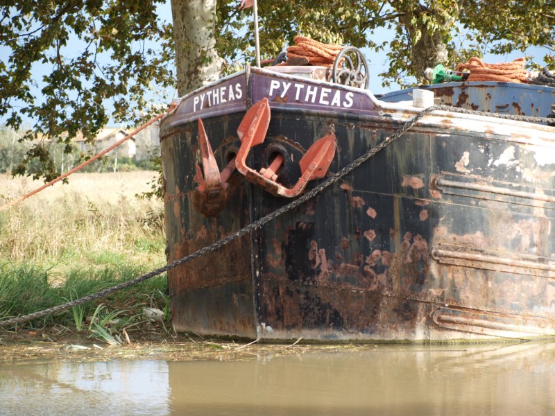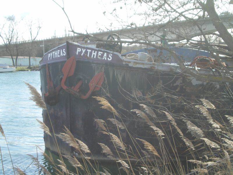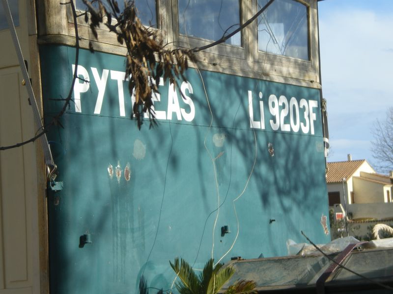 Sinon Pythéas, de construction rivée a l'origine, était surement une barge de 38m avec une cale de 30m, deux cabines sous le pont av et ar et une grande barre a l'arrière.