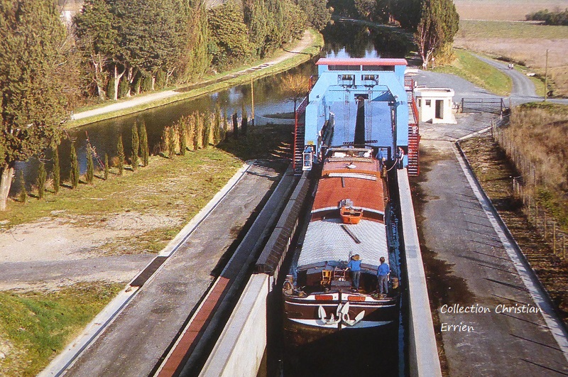 Cette photo, à la pente d'eau de Fonsérannes, a été prise quand ils ont conduit leur bateau pour la dernière fois à Sète, aux alentours de 1986. Après Sète, il a été raccourci, cela a paru dans un numéro du magazine Fluvial ; il n'avait plus de marquise et était triste, raccourci dans une écluse prés de Sète qui servait de cale pour les bateaux !
