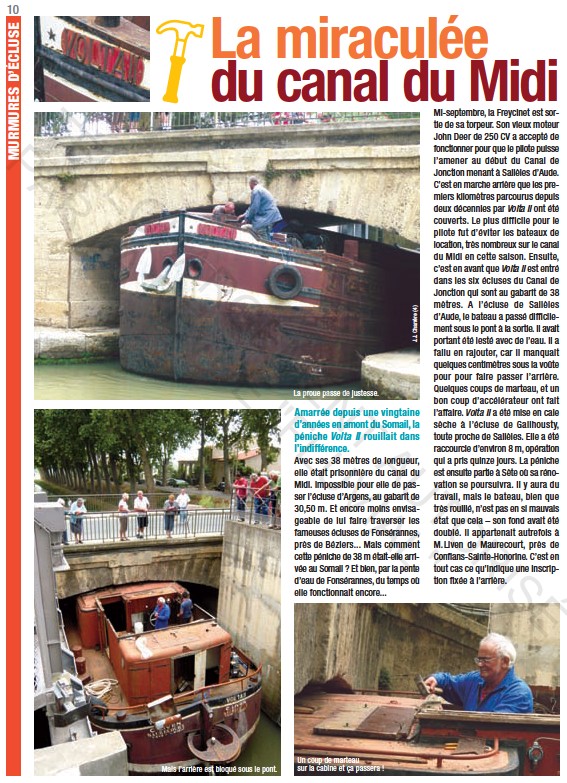 vous n'avez pas chome tout une matiner a consulter vos articles que j'ai trouve passionnant comme d'habitude et tres instructif pour certain j'ai tout de suite remarque le retour de vacance de notre ami Dragon, pour ma part j'ai trouve deux ou trois unite interessante dont je vais me faire un plaisir de partager avec vous, le premier LE VOLTA II qui apparament vient d'etre coupe en trente metre et on fase de restauration sur le canal du midi a CERS 34 situe entre BEZIER et AGDE j'ai aussi retrouver deux franco belge avec des probleme d'identification mais se sera pour un autre article.