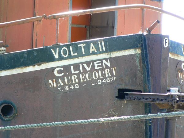 Ce bateau, le VOLTA II à M. et Mme Cyprien Liven, qui était le frère de mon mari, a été construit par le chantier Defernez à Pont-à-Vendin (62), dans les années 50. Il était moitié rivets et moitié soudé, équipé d'un moteur Willems de 90 cv environ !
