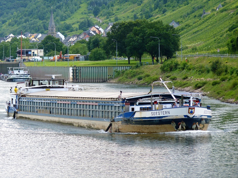 Seestern , 79,80 x 9,00 x 2,74 , Bouwjaar 1962 , Werf Ebert & Sohne in Neckarsteinach ( Duitsland ) , 750 pk Deutz , ex Götz IX , ex Jochen , eigenaar Seestern Schiffshandel & Transport in Remagen , ENI 04700860