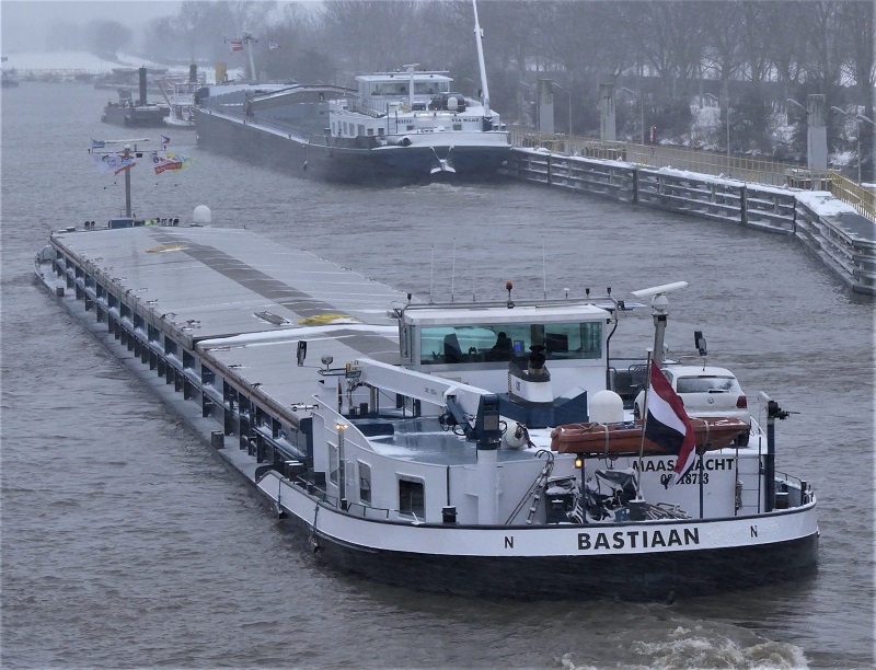 Bastiaan , 105,00 x 9,50 x 2,82 , 1920 ton , Bouwjaar 1969 , Werf Ebert & Söhne in Neckarsteinach ( Duitsland ) , 1050 pk Caterpillar , ex Elise Ebert , ex Bolivar , ex Vetura , ex Taberna , ex Boekanier , ex Somnium Breve , eigenaar Mira Forti Exploitatie BV in Maasbracht , ENI 02318713