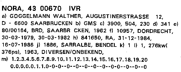Dès 1958 le NORA appartenait à Mathias Herrig à Saarbrücken qui - après un avarie - laissait construire la peniche de nouveau chez Wirotius à Güdingen.