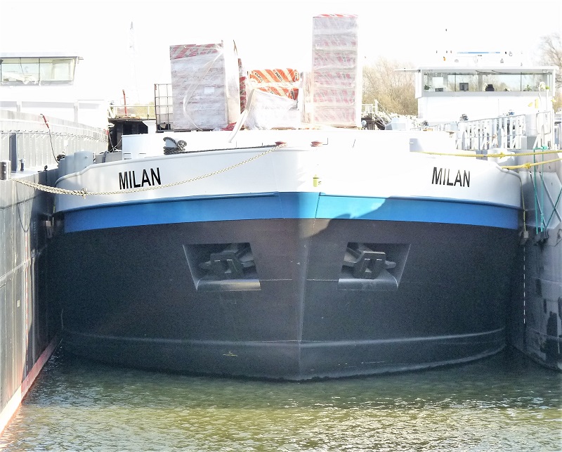 Milan , 105,00 x 10,50 x 3,49 , 2608 ton , Bouwjaar 201o , Werf Hans Boost in Trier ( Duitsland ) en De Gerlien – van Tiem in Druten ( Nederland ) , 1500 pk ABC en 529 pk Scania – van Tiem boegschroef , eigenaar Riksja BV (R. Verlaan) in Maasbracht , ENI 02333247