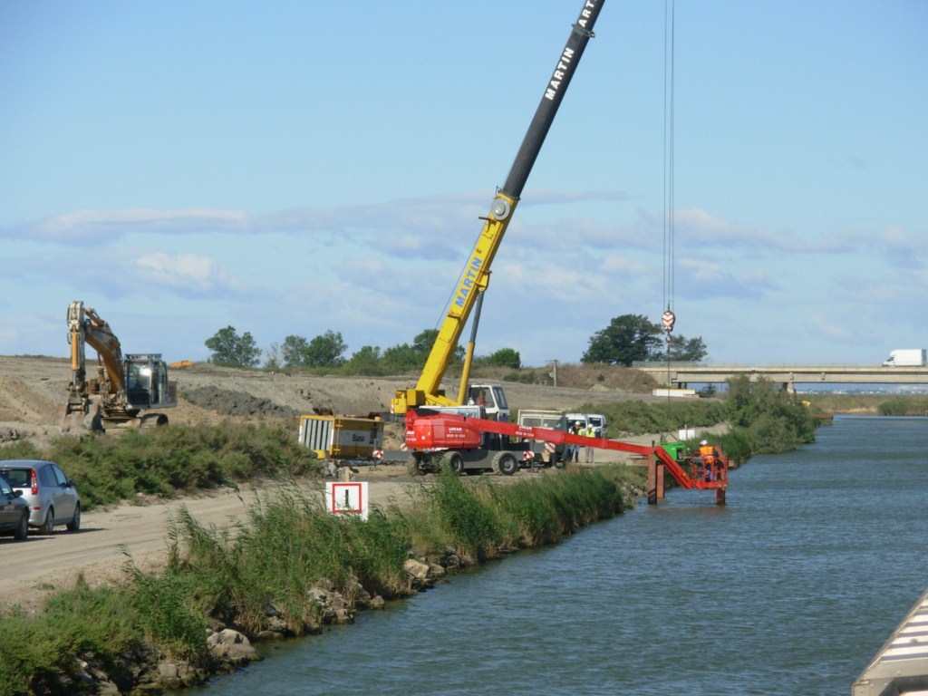 l'élargissement se fait par les berges coté mer,les berges coté des étangs sont préservées afin de ne pas déstabiliser l'écosysteme naturel,durée des travaux prévu et de 28 mois ,l'élargissement de 6 a 16m ,le réhaussement des ponts de 20 a 80 cm,des zones de croisements,seront également aménagées,notament aux aresquiers et au triangle de carnon,la zone de croisement de maguelone sera,elle,améliorée.
