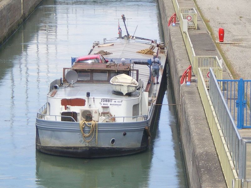 Surprise! Il passe à 7h du matin, pourtant l'écluse ouvre qu'à 8h! :1869: Il n'a pas du retard, et pour nous, la première, c'est foutu.
