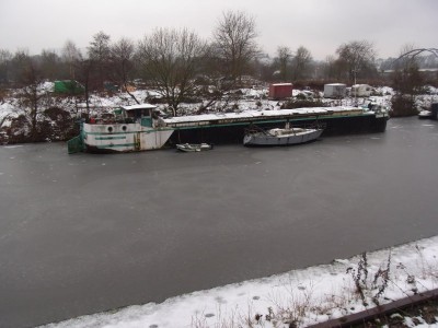 Ah - je me suis trompé concernant le chantier... (peut-être à cause de la toilette :oops: ) .Je mets les deux photos ici parce que je ne sais pas la devise du bateau, pris à Saarbrücken dans le port de l`est (Osthafen) en décembre 2010. Peut-être la toilette n`est pas original :shock: :mrgreen:
