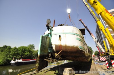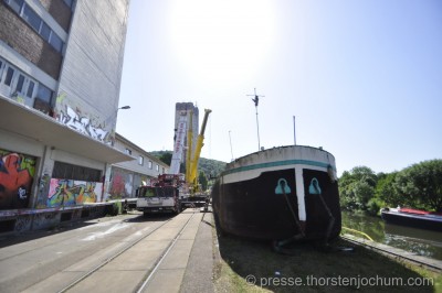 Sur le site internet de la société Schmitt Boote und Schwimmende Anlagen GmbH (SBS), ICI, on trouve une série de photos du levage du THEA, prises par Thorsten Jochum (http://www.thorstenjochum.com) ; c'était le 18 juin 2013, pour le déchirage du bateau :